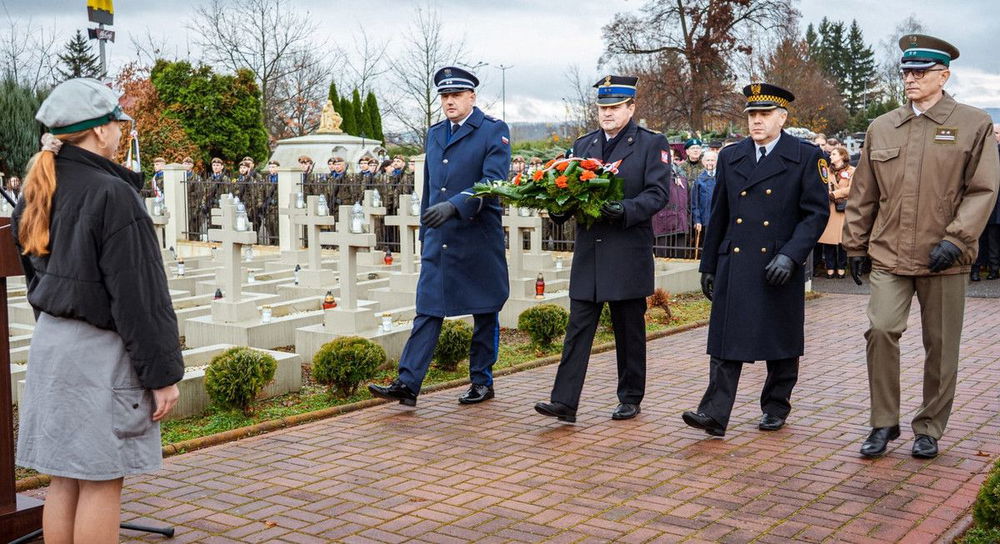 Przed Krzyżem Pamięci oraz pomnikiem Tadeusza Kościuszki przedstawiciele władz samorządowych złożyli wiązanki kwiatów. Na cmentarzu centralnym odegrano Hymn Państwowy, a burmistrz Tomasz Matuszewski wygłosił okolicznościowe przemówienie.