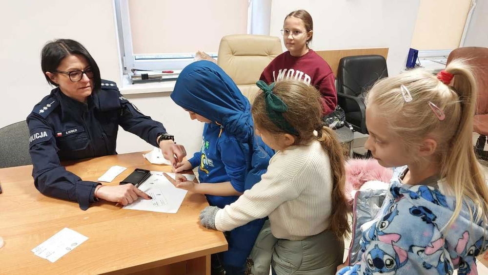 Ogromnym zainteresowaniem cieszyła się pracownia technika kryminalistyki, gdzie uczniowie mogli zobaczyć etapy zabezpieczania śladów i dowiedzieć się, jak ważna jest dokładność w tej pracy. Na zakończenie każdy otrzymał pamiątkowy odcisk palca.